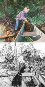 Bottom image: Wild Iris charcoal drawing by Hew Elcock
