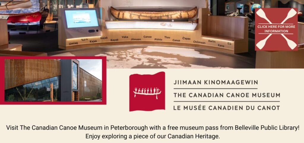 Visit The Canadian Canoe Museum in Peterborough, Ontario with a free museum pass. Borrow a one week pass for free admission up to 2 adults and 4 youth (ages 5-17). Discover Canada by canoe and explore the world’s largest collection of paddled watercraft with hands-on activities for all ages. Borrow a pass today!