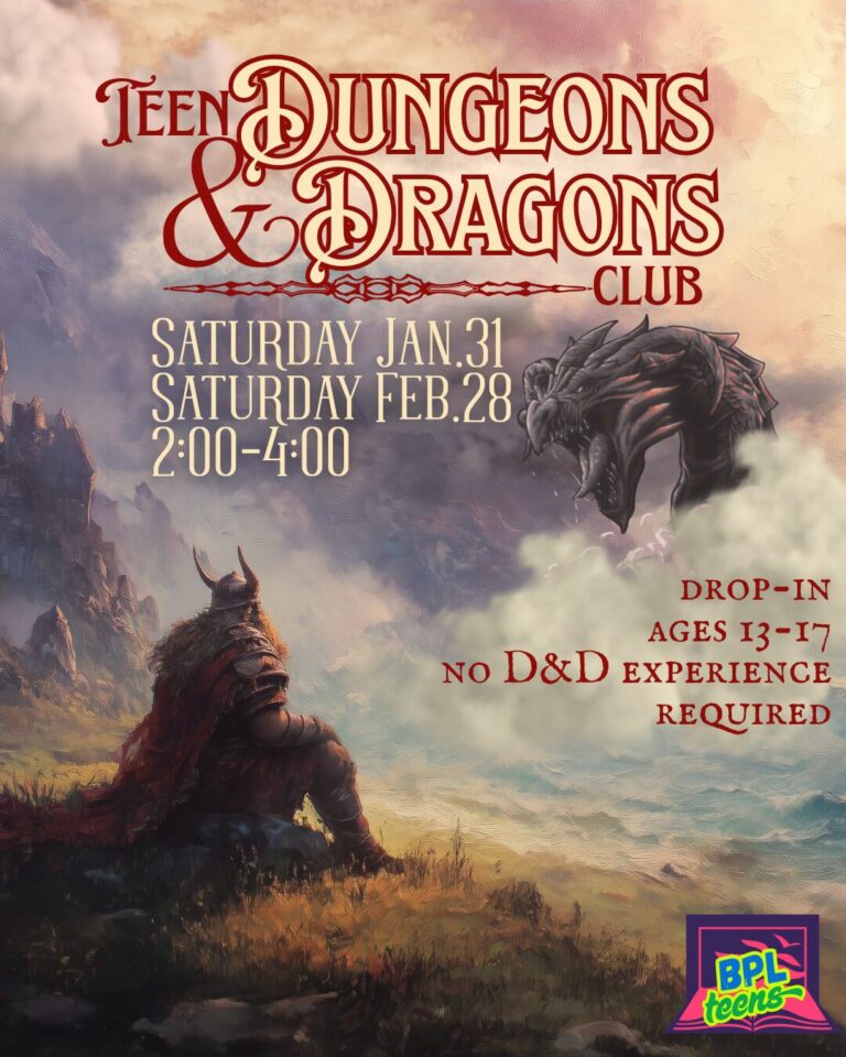 Join us for a friendly campaign at our new Teen Dungeons & Dragons Club! No D&D experience required.