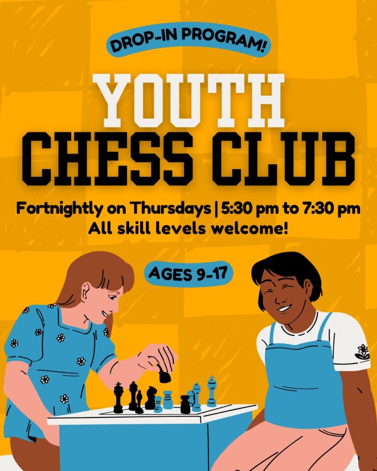 The chess club meets biweekly on Thursdays from 5:30 p.m. – 7:30 p.m.